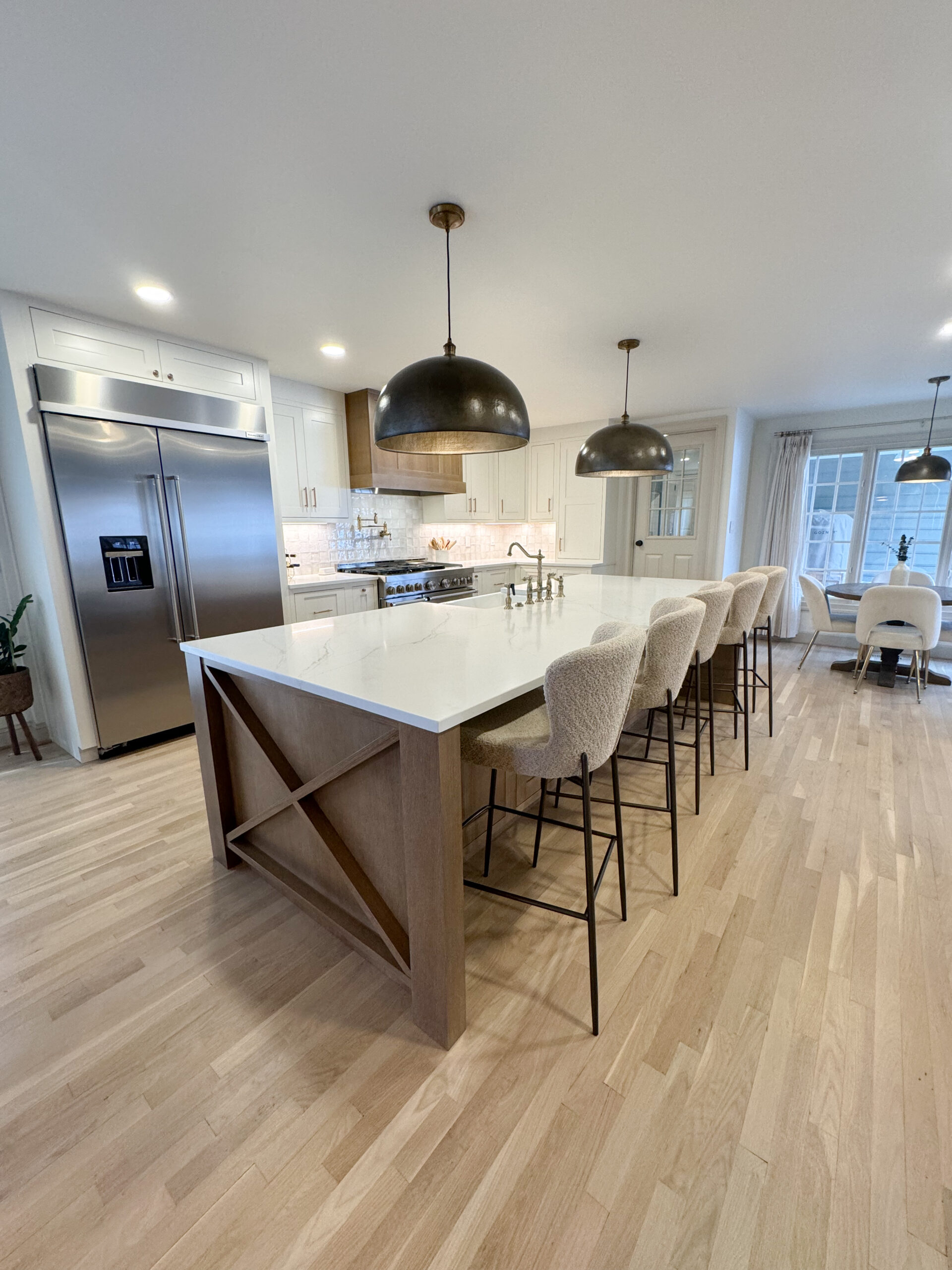 High-end appliances, refinished hardwood floors, and brick herringbone flooring ensure longevity and timeless appeal.